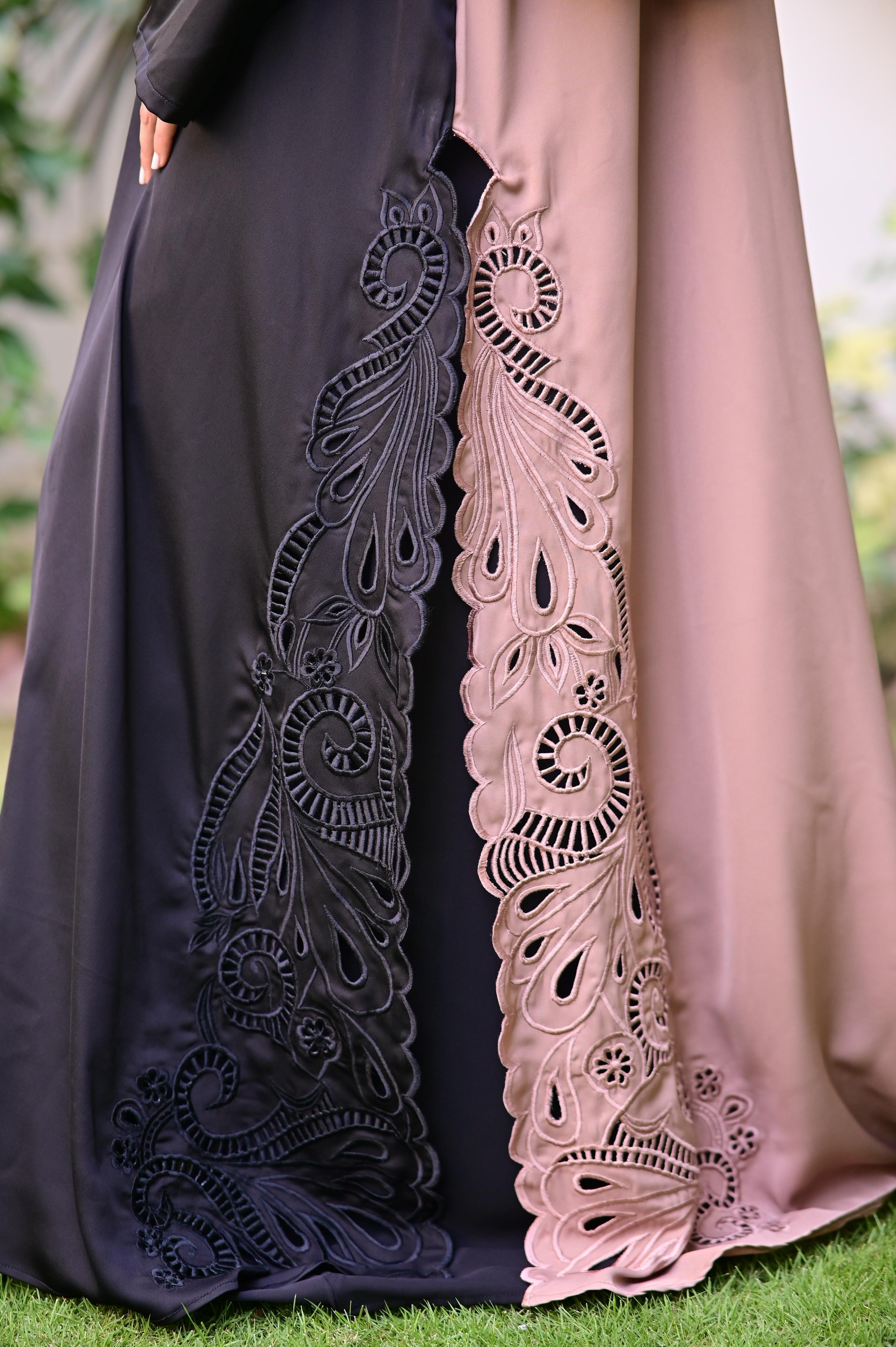 Details: Step into refined elegance with our two shade Badar Abhaya, a timeless piece designed to exude sophistication and grace. This abhaya features meticulously crafted machine Cut work on sides, adding a touch of modern artistry to a classic silhouette.