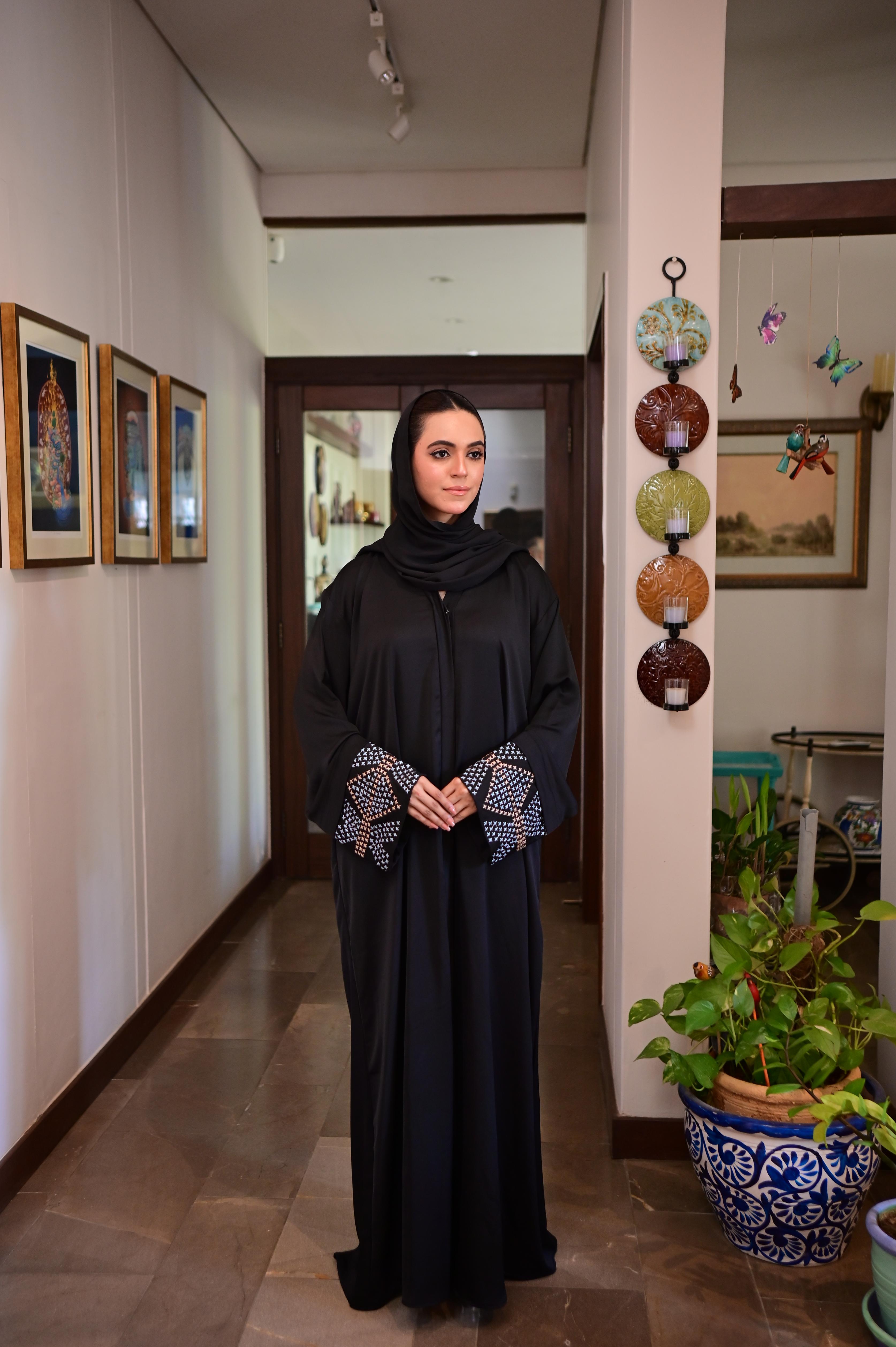 Details: Step into refined elegance with our Black Abhaya, a timeless piece designed to exude sophistication and grace. This abhaya features meticulously crafted machine embroidery on the sleeves, adding a touch of modern artistry to a classic silhouette.