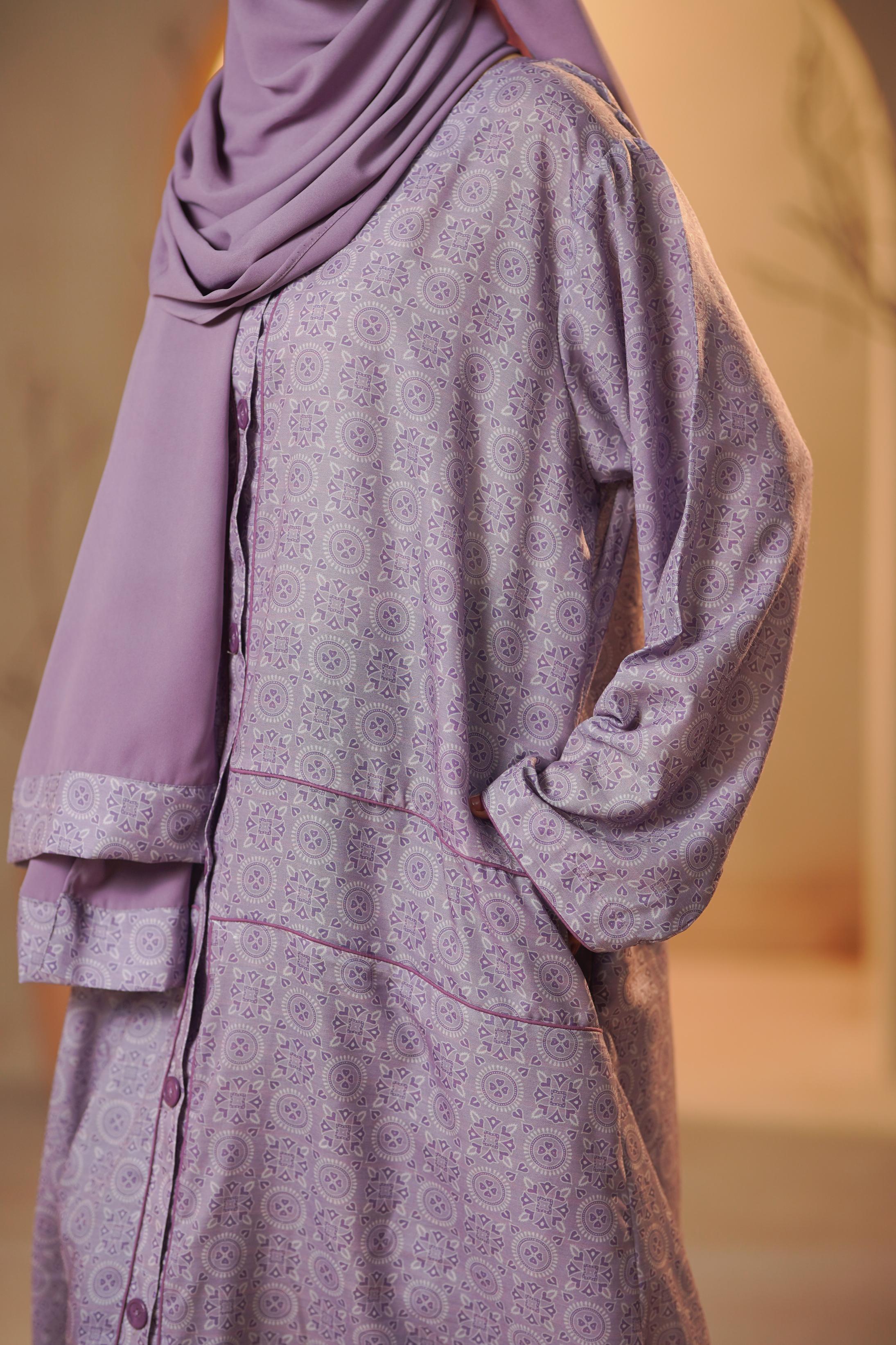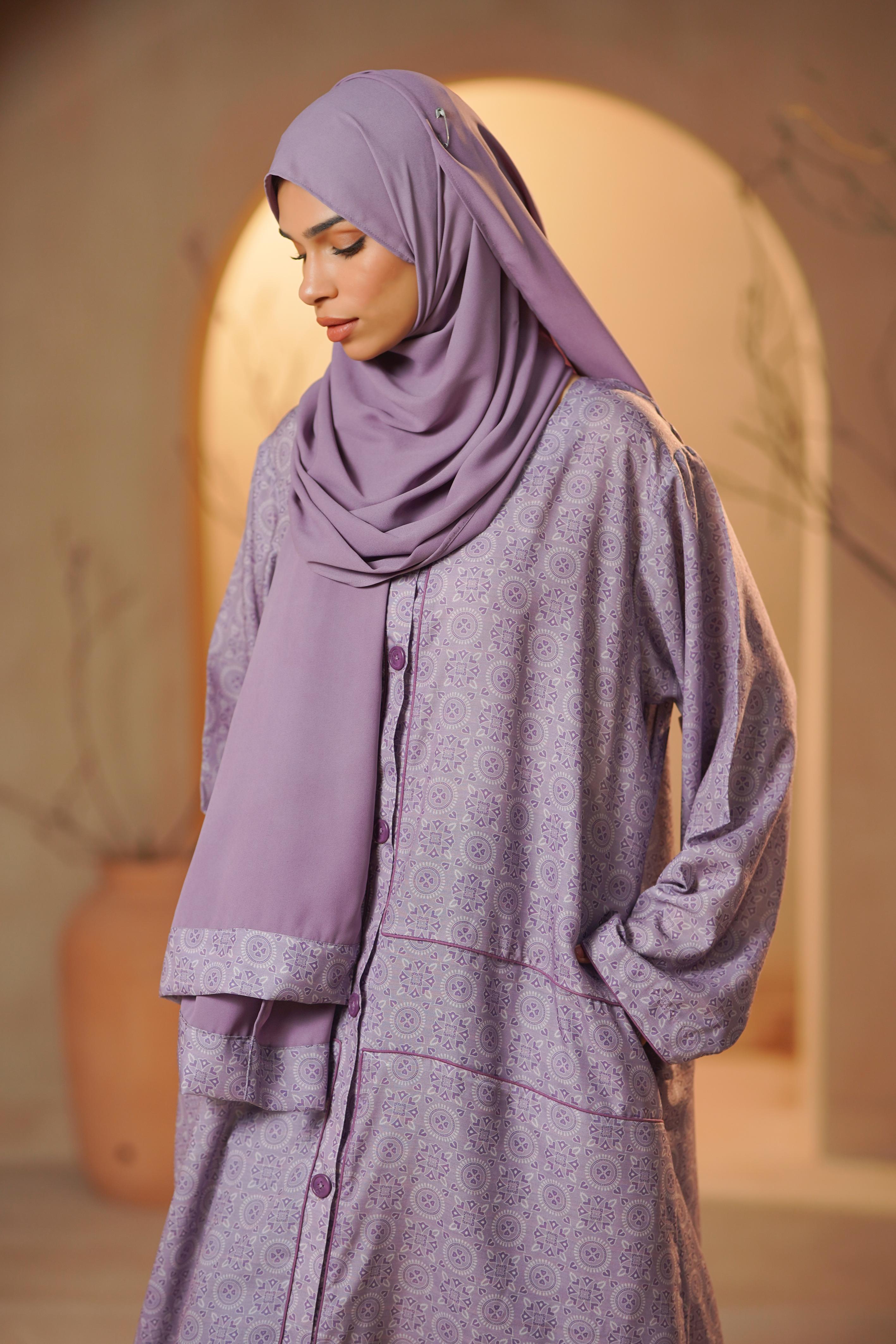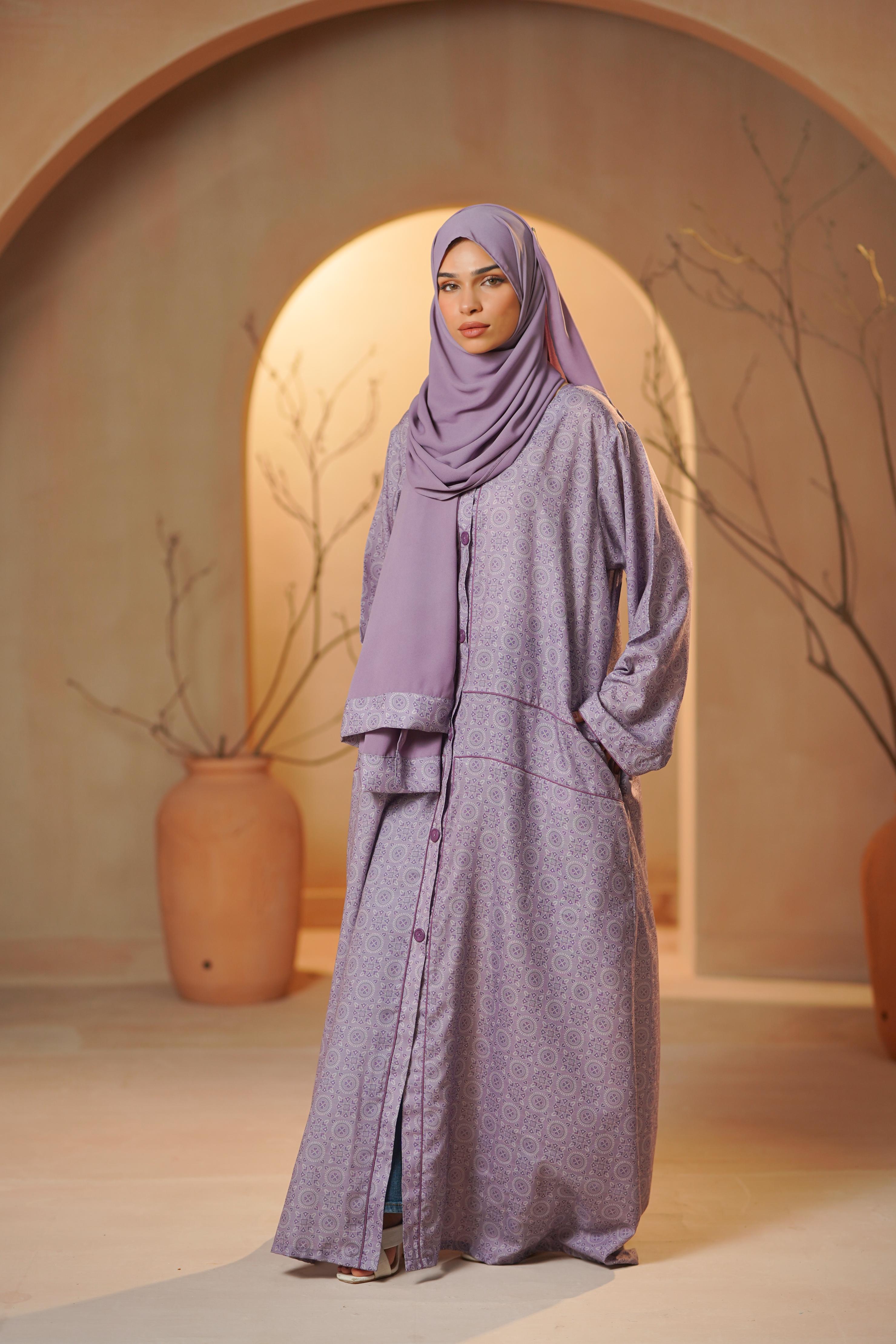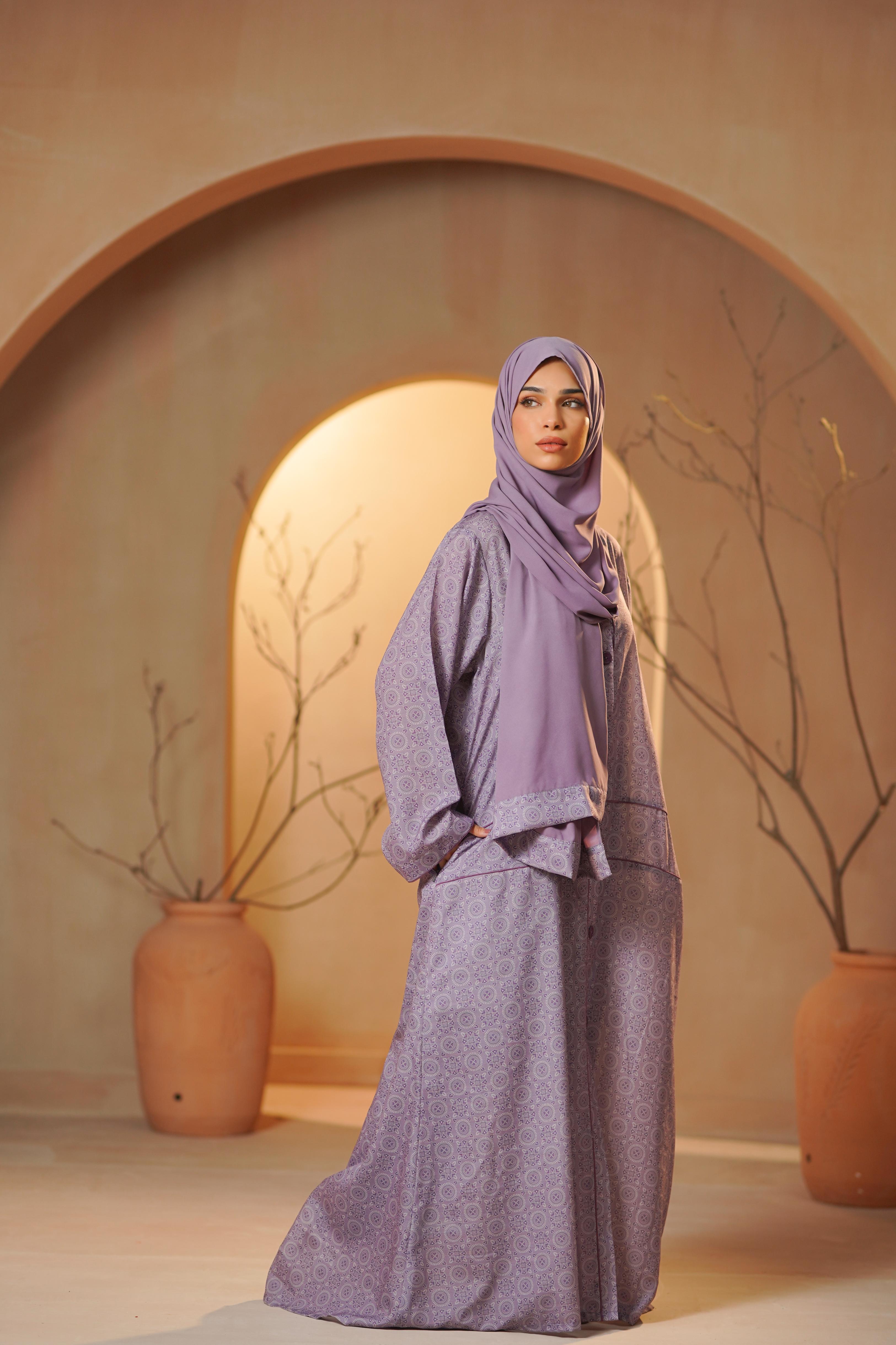 Wrap yourself in effortless elegance with this purple Abaya, crafted from breathable Swiss lawn for a graceful drape and lightweight comfort. Featuring delicate print detailing, it brings a touch of modern flair to traditional modest wear. Paired with a flowing double georgette dupatta, this ensemble is perfect for refined, everyday sophistication.