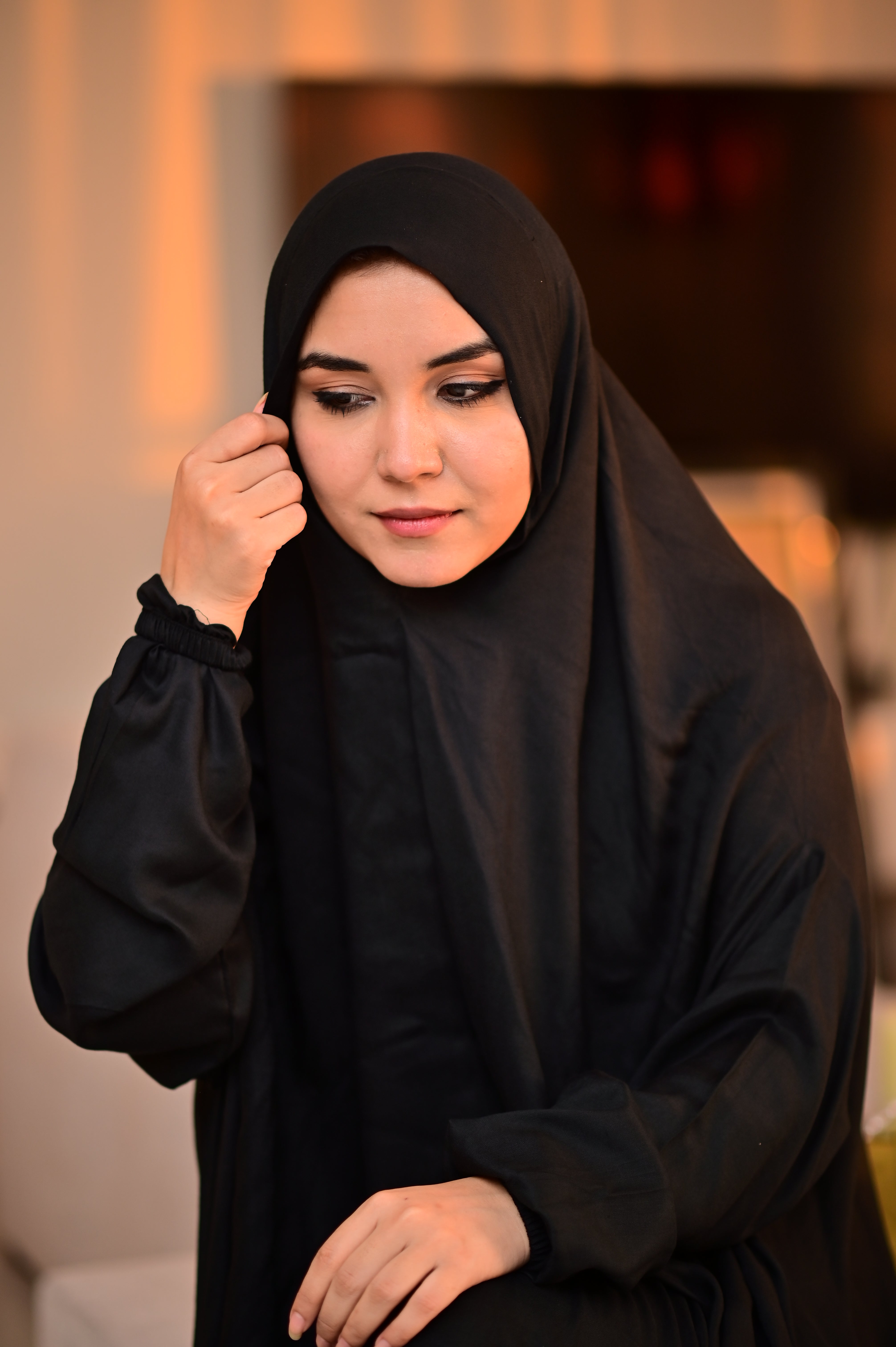 Details: Embrace tranquility with our elegant black namaz chadar. Crafted for serene moments, its elegance adds a touch of sophistication to your prayer rituals.