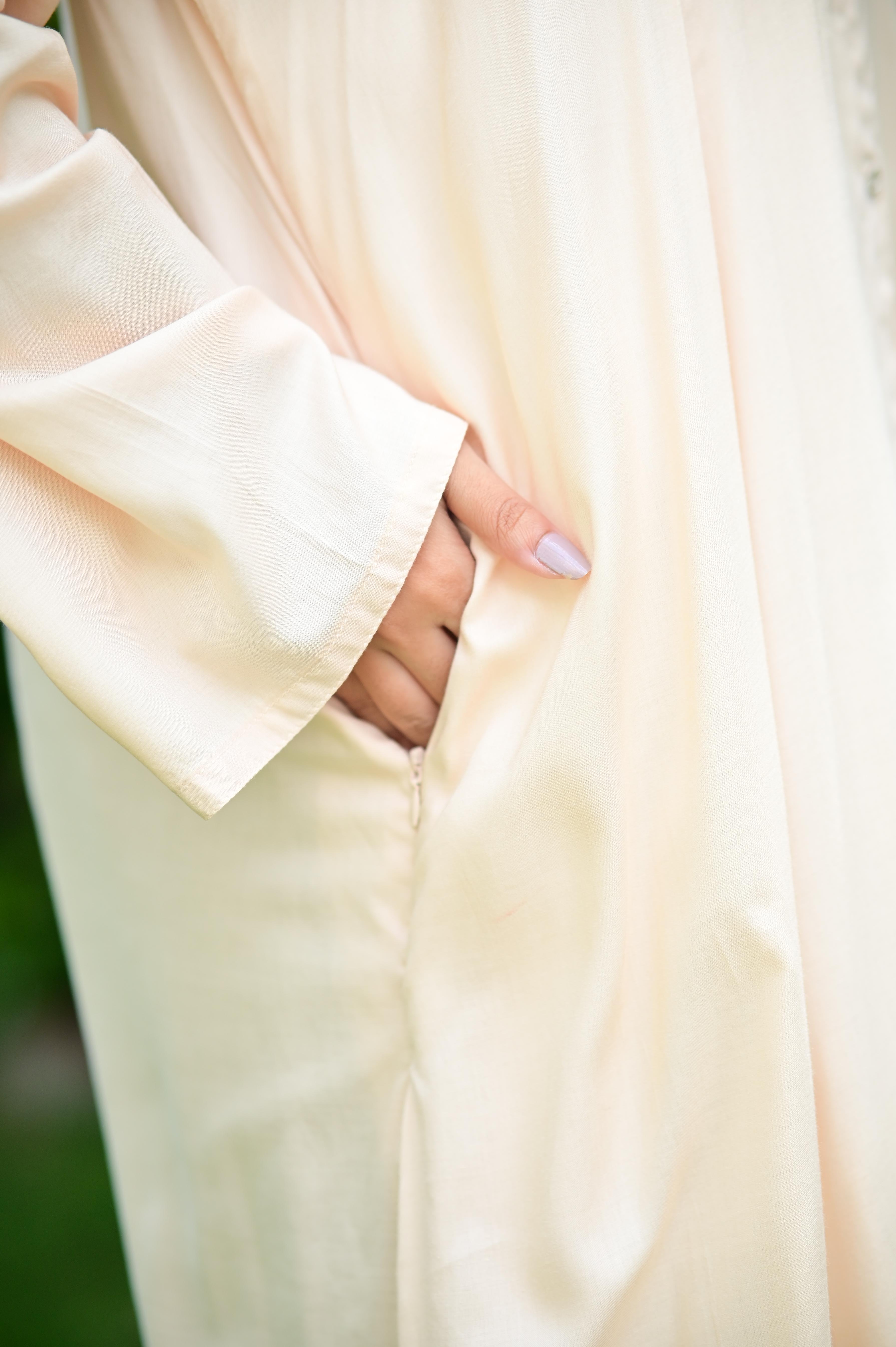 Details: Embrace comfort with this relaxed-fit casual abaya. Crafted from soft, breathable material, it drapes effortlessly, making it ideal for lounging at home or running errands in style.