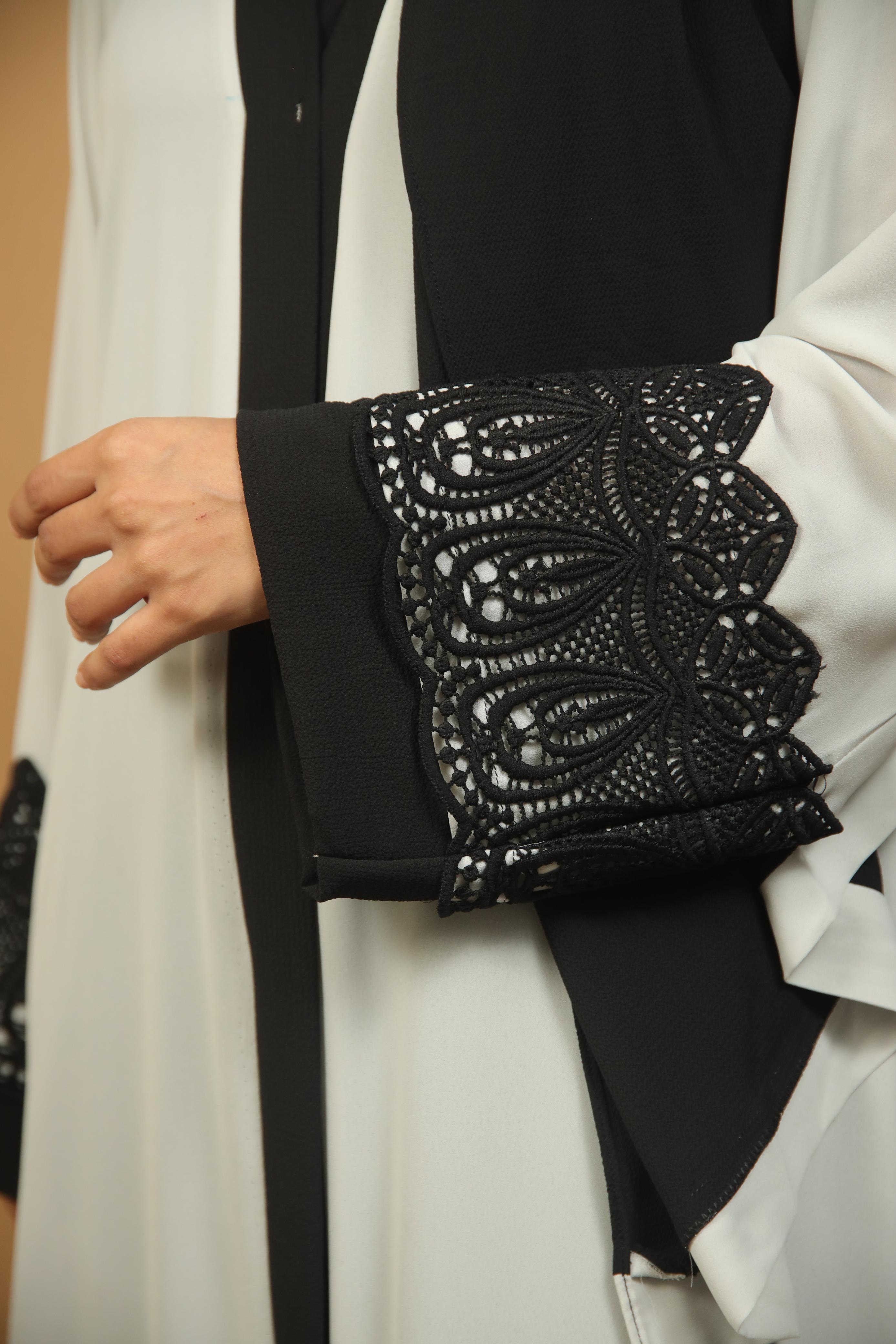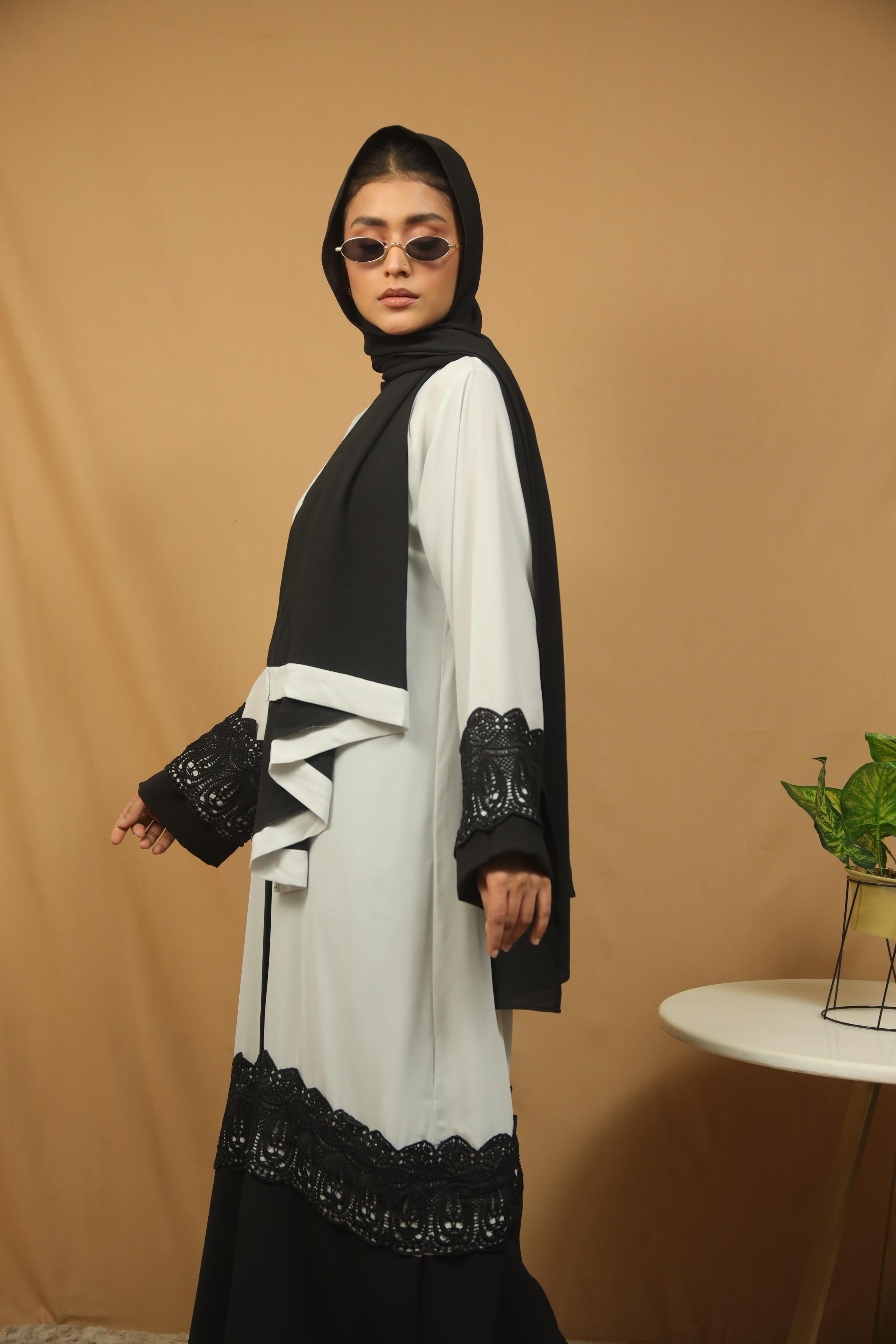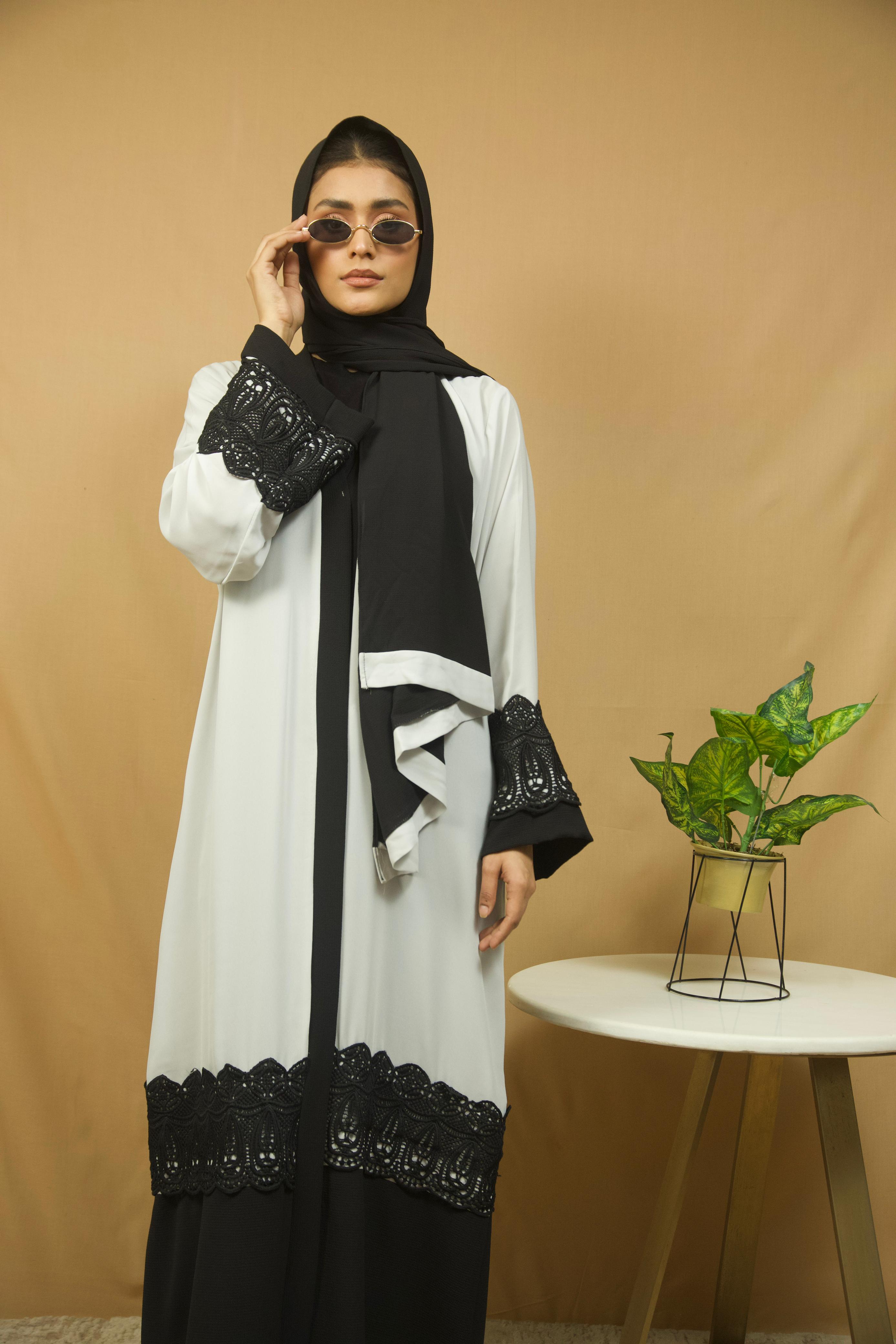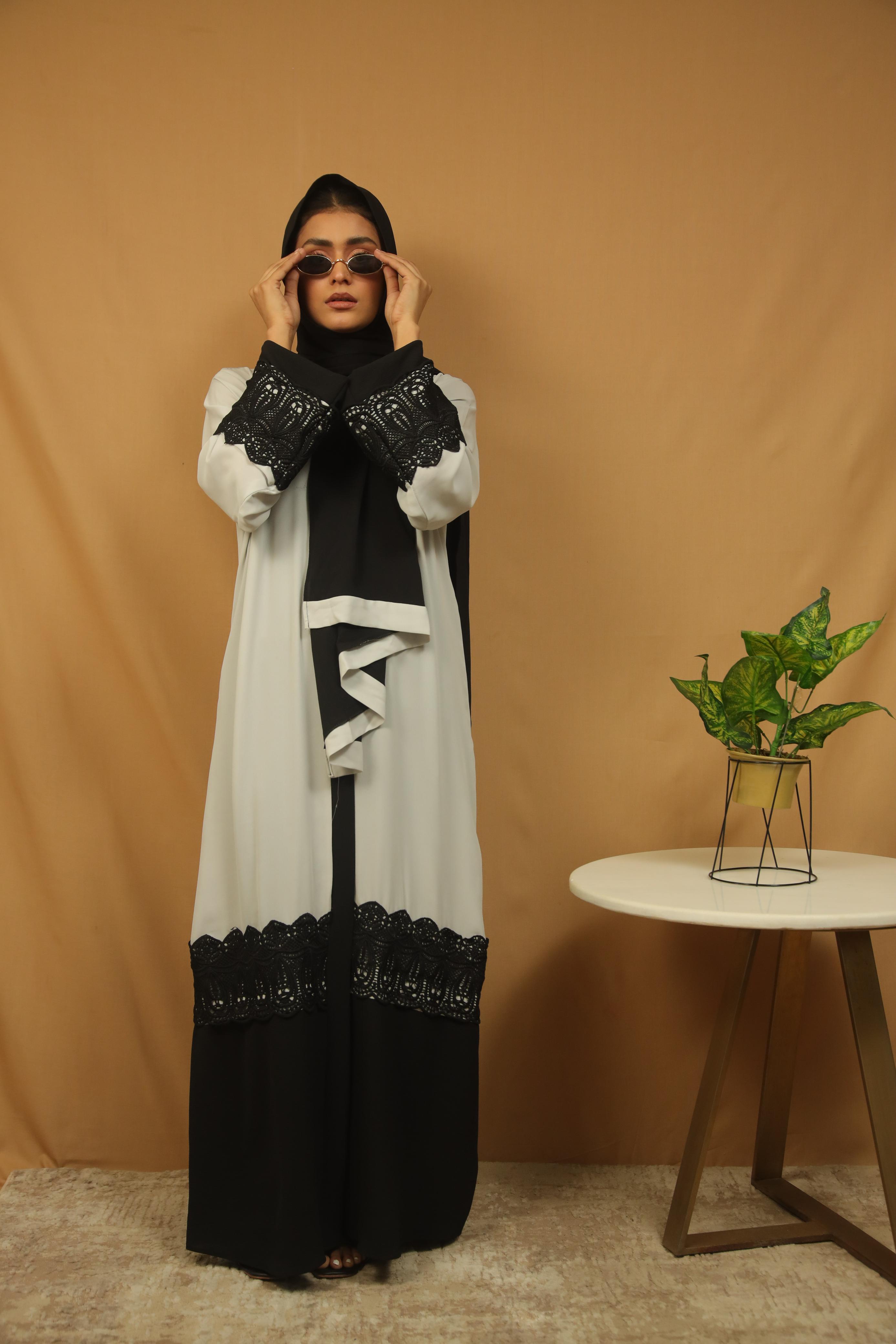 Details: Introducing the Sawaira Abaya—a versatile choice for both formal and casual occasions. This abaya features stylish black detailing on the sleeves and at the bottom, adding a touch of sophistication.