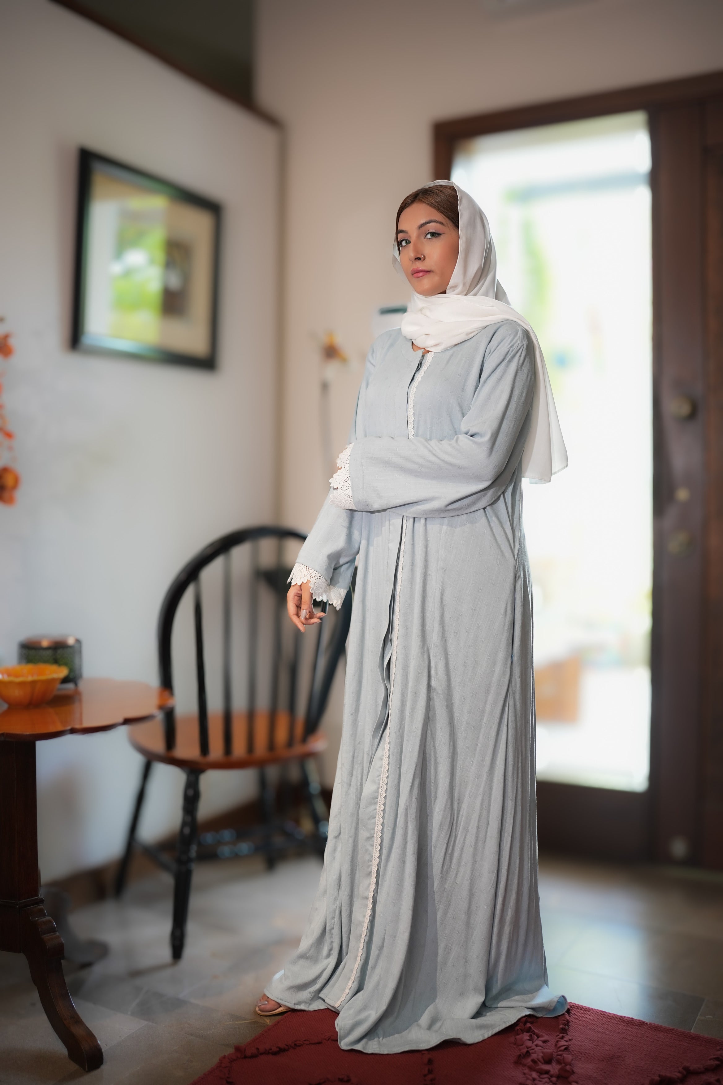 Details: Embrace comfort with this relaxed-fit casual abaya. Crafted from soft, breathable material, it drapes effortlessly, making it ideal for lounging at home or running errands in style.